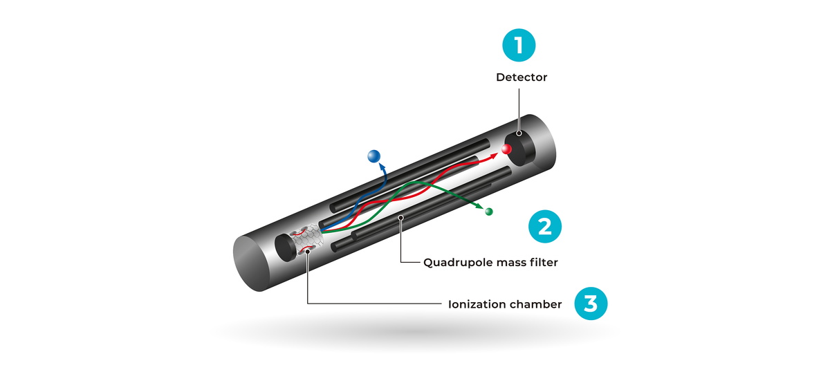 BELMASS II是一个四级杆质谱仪(QMS),是质谱分析中使用的一种质量分析仪器。作为一个四极杆,它由四个平行排列的圆柱形杆子组成。通过对棒子施加一个振荡电场,根据离子的轨迹稳定性来分离它们的质荷比(m/z)。一个电子倍增器检测偏转的离子。BELMASS II可以与各种仪器结合使用。特别是与BELCAT II结合使用时,它可以提供有关气体/蒸汽混合物中解吸气体的种类及其突破曲线的重要信息。