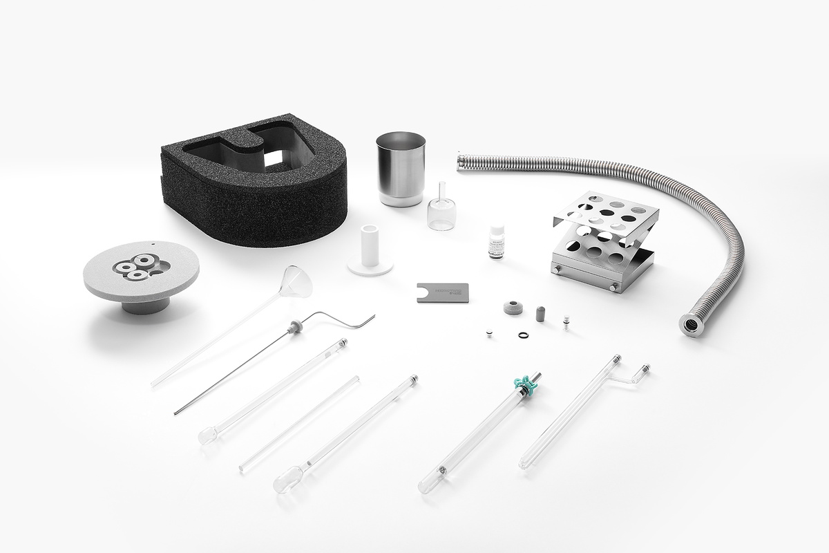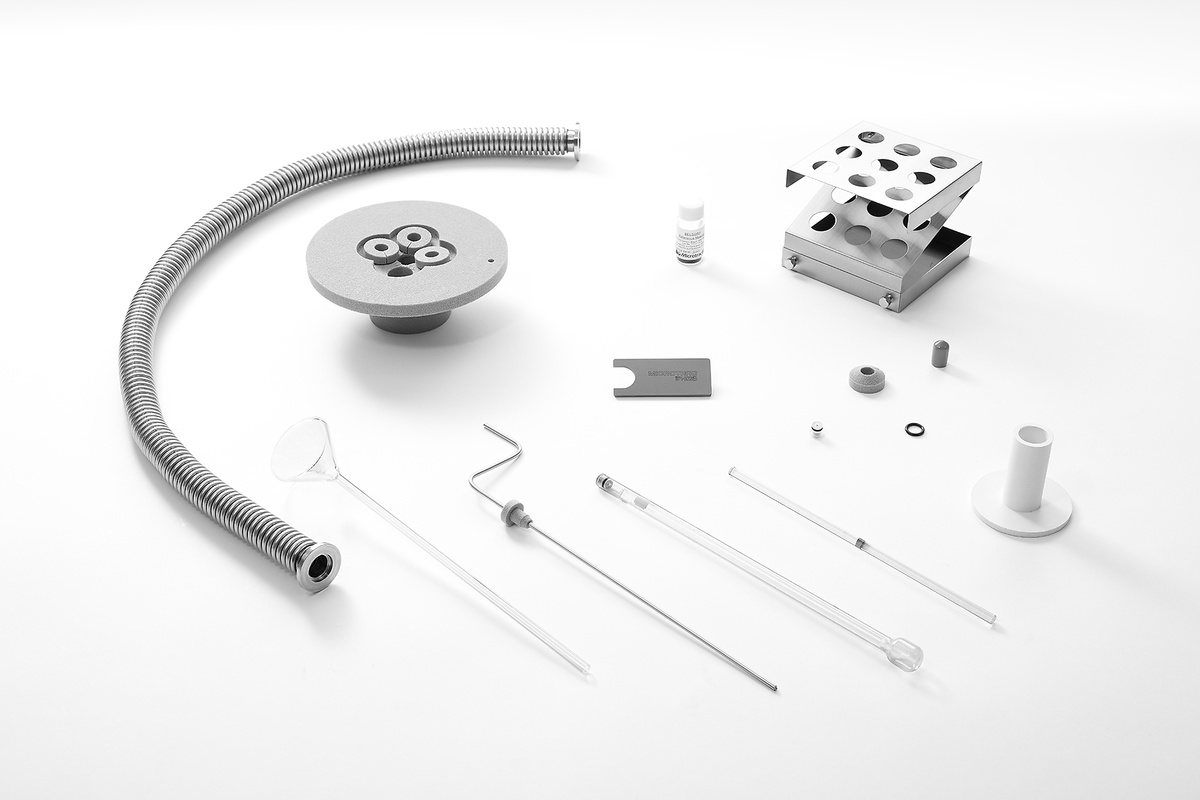 可以对各种材料进行测量,包括颗粒、模具、基材,以及粉末和其他不应暴露在大气中的材料。连接器配有外径为 φ9 mm 或 φ14 mm 的样品管。可以为较大的样品(如颗粒)提供特殊的样品管,而较小的细粉末样品也可以使用合适的样品管轻松测量。