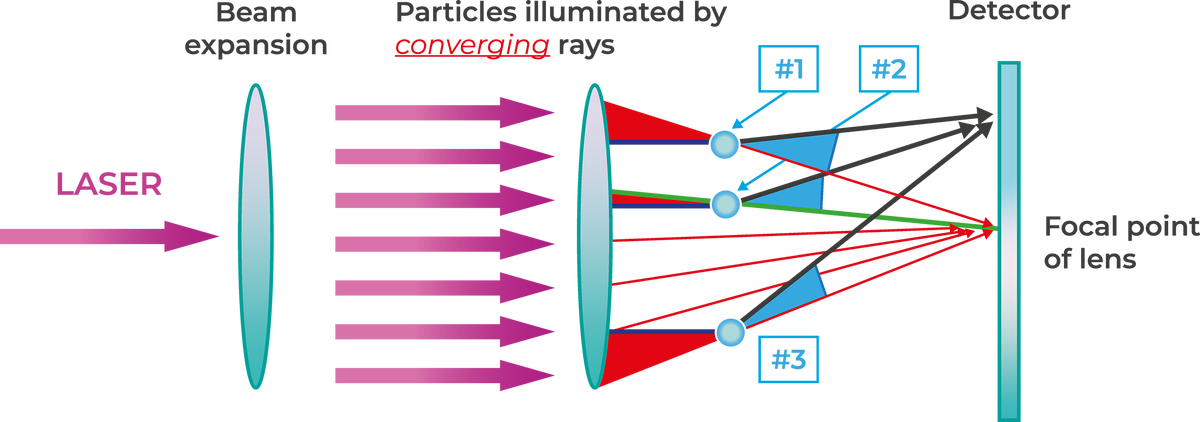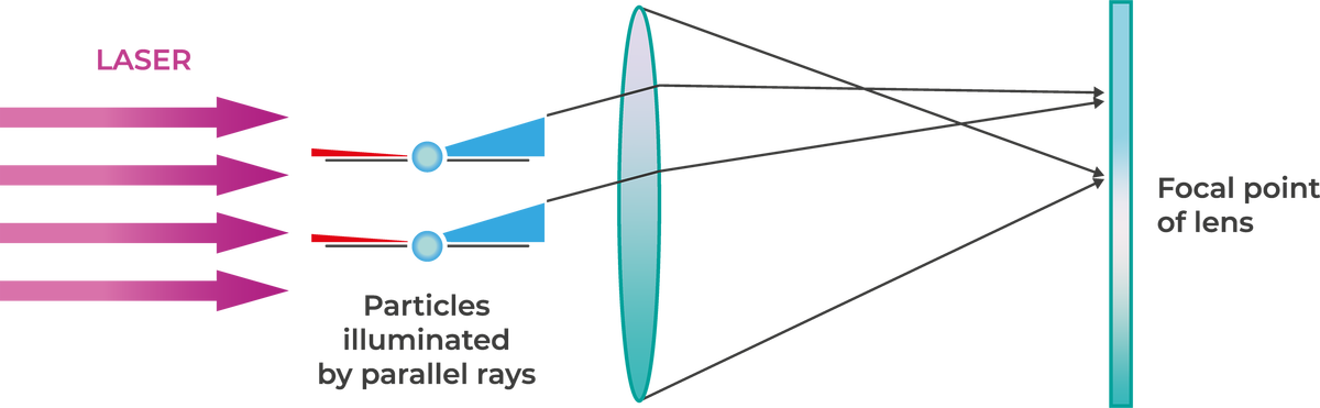 根据 ISO 13320,激光衍射测量仪器可以使用傅立叶光学或反向傅立叶光学进行操作。 对于傅立叶光学,颗粒由平行光束照射,而在反傅立叶排列中,则使用会聚激光束。 傅立叶光学提供的优势是,无论颗粒在激光束中的位置如何,始终可以正确检测到衍射信号,并且在被测量的样品体积中的任何点都存在相同的衍射条件。 使用反傅里叶设置,颗粒流必须相对较窄,此外,会聚光束中相同大小的粒子相对于光轴具有不同的衍射角。 与傅立叶设置相比,所有这些通常会导致模糊的衍射图案。 反傅立叶方法的优点是可以在较小的探测器阵列上收集较宽的角度范围。 但是,通过适当的设计,傅立叶排列也可以覆盖 0-163° 的角度范围。 因此,Microtrac NRB激光衍射分析仪使用傅立叶排列。
