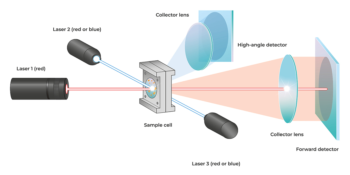 激光衍射测量范围的上限是由随着粒径的增加,衍射角变得越来越小这一事实决定的。 因此,粒度之间的微小差异更难以计量检测。 测量范围的下限由小颗粒散射光的弱强度定义。 使用较短波长的光会增加散射强度,可以将激光衍射的测量范围扩展到更小的粒径。 这就是为什么许多激光分析仪使用蓝光光源来提高亚微米尺寸范围内的性能的原因。