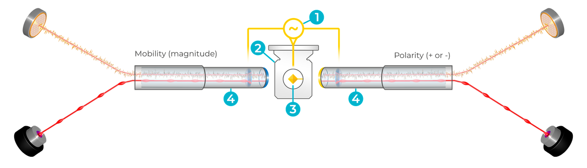 1. excitation source | 2. Teflon zeta cell | 3. Backplate electrode | 4. optical probe
